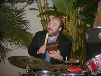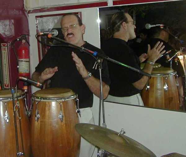 Jim, our "sound reinforcement specialist" (the guy who pushes all the dials), in a typical moment on the job |