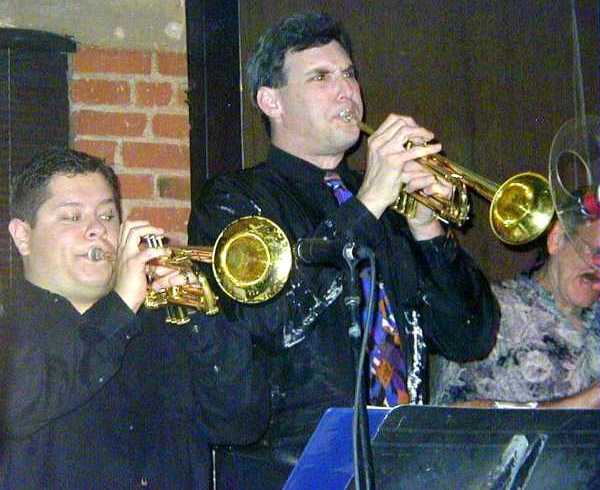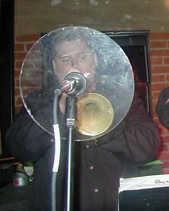 Jim, our "sound reinforcement specialist" (the guy who pushes all the dials), in a typical moment on the job |
